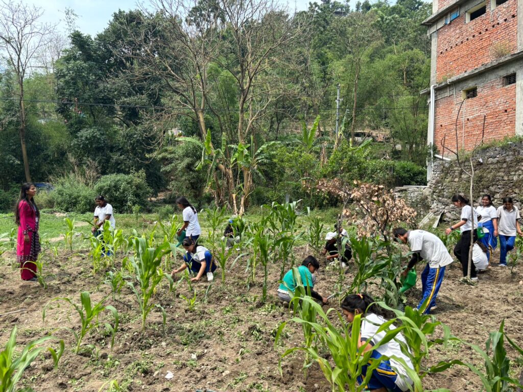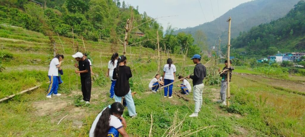 Our second task was on vegetable garden given by our teacher, Mr. Amrit Bhandari. Some veggies like pumpkin, tomato, beans, cucumber, are growing in our field. Trilling with bamboo and dead branches were done and many more to go.